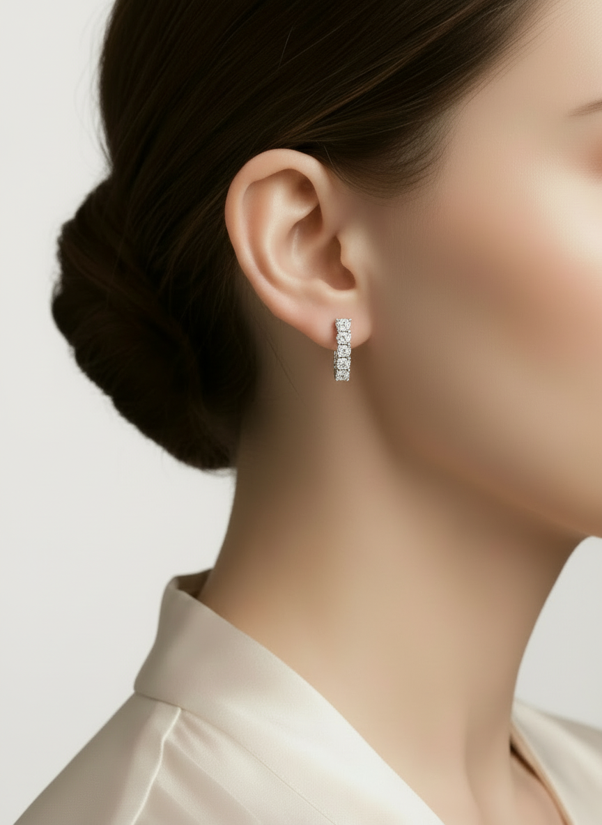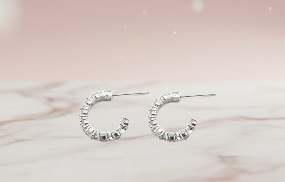 Inspirées des plus grands joailliers, ces boucles d’oreilles captivent la lumière sous tous les angles, garantissant un effet éblouissant de jour comme de nuit.Chaque créole est somptueusement sertie de plusieurs moissanite taillés à la perfection pour une brillance maximale.Elles sont disponibles en finition plaqué Or ou Argent S925