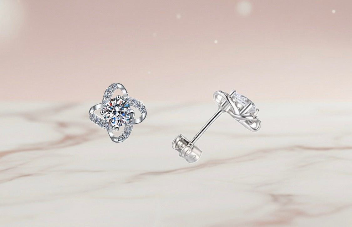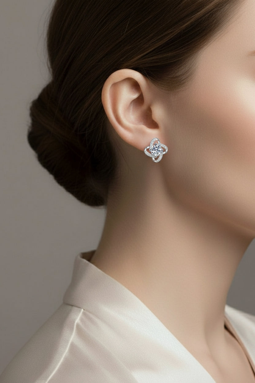 Ces pièces uniques, conçues avec minutie en argent massif S925 rhodié, présentent un design délicat évoquant une fleur stylisée.Chaque boucle d'oreille est centrée autour d'une moissanite cubique de qualité supérieure, taillé avec précision pour capturer la lumière avec un éclat comparable à celui d'un diamant. Les pétales ou feuilles sont également ornés de nombreux petits zircons pavés, créant un halo de brillance qui amplifie la luminosité de la pierre centrale et ajoute une dimension de luxe indéniable.